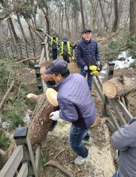 이날 정비 활동에는 도척면 이장협의회, 자율방재단 및 도척면 행정복지센터 직원들이 참여한 가운데 지난 폭설로 쓰러지거나 부러져 태화산 등산로를 가로막고 있는 수목과 전도 위험이 있는 수목을 임시 정비해 등산로를 이용하는 등산객과 이용객들이 임시로 통행할 수 있도록 하고 이로 인한 안전사고를 예방하기 위해 추진됐다.
