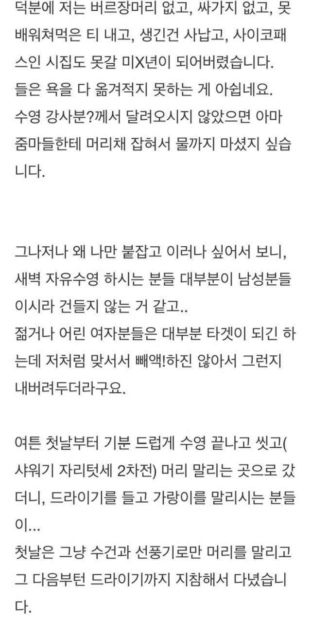 젊은 여성들이 수영을 배우다 포기하는 이유