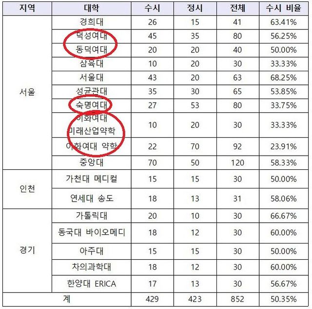 2024학년도 약학대학 입학전형을 실시하는 대학