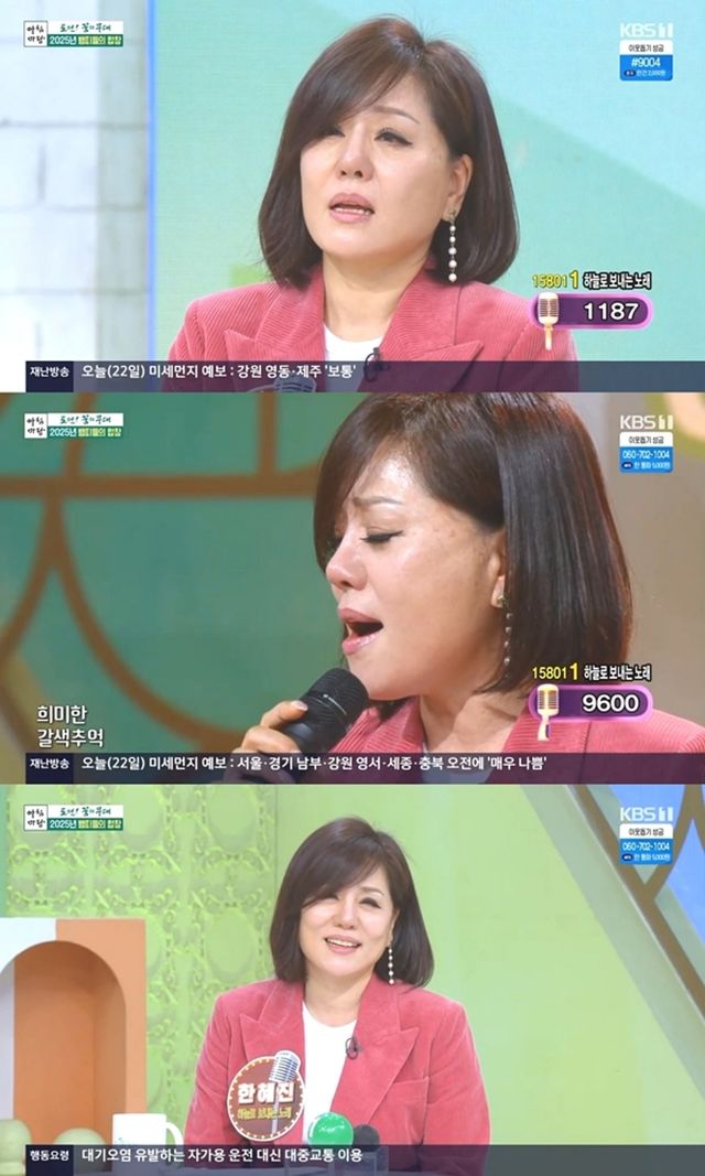 한혜진은 자신의 곡 '갈색추억'을 가창하며 세상을 떠난 남편을 향한 그리움과 못다한 진심을 담아내 보는 이들을 깊은 여운 속에 빠지게 했다. 무대를 마친 한혜진은 "이 노래를 이런 느낌으로 불러보기는 처음이다. 평소에는 무대에서는 생각을 안 하려고 노력하는데 오늘은 다르게 생각을 많이 했다"고 전했다.