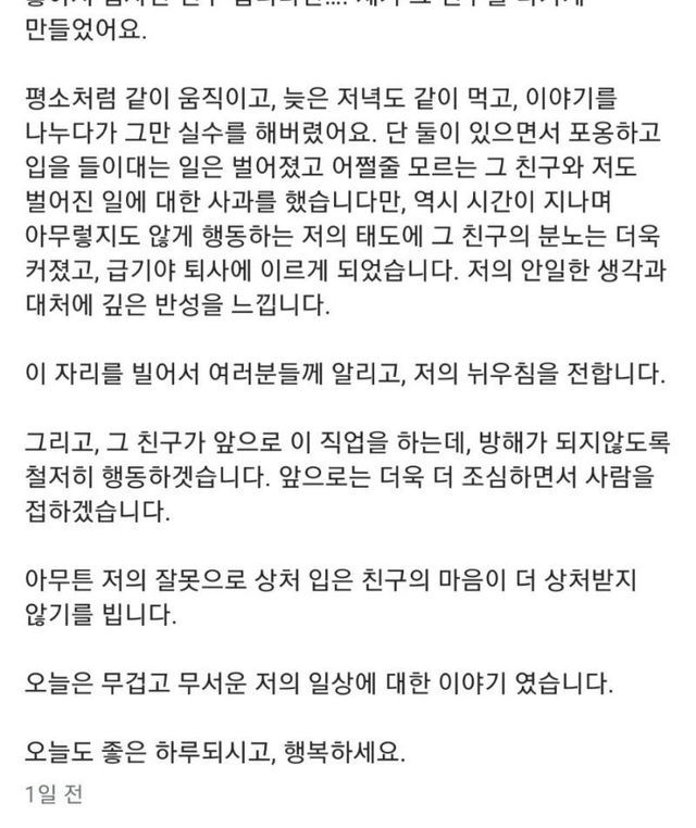 그러니까 직원한테 실수로 뽀뽀해서 퇴사했다고?
