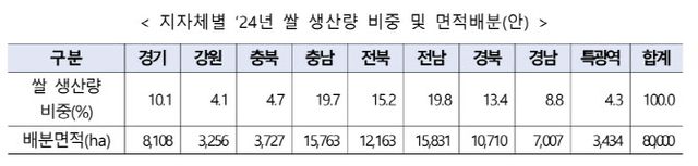 농식품부 관계자는 “지난 9월 민·관·학 태스크포스(TF) 출범 이후 총 7차례 걸쳐 의견수렴을 했고 이번에 최종안이 나왔다”며 “앞으로 현장의 목소리를 적극 수용해 벼 재배면적 조정을 통한 쌀값 안정이라는 정책 목표를 위해 노력할 것”이라고 했다.