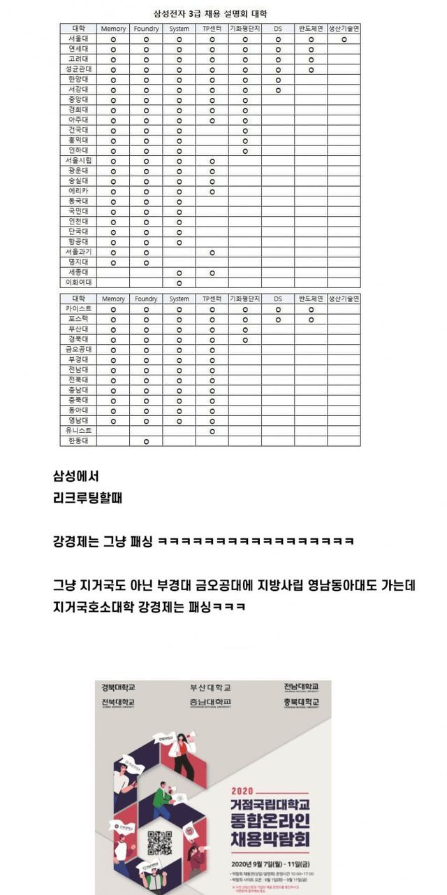 대기업 채용설명회보면 아무리못해도 충북전북까지 가지
