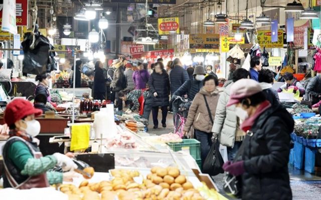 설 앞두고 분주한 전통시장 - 설 연휴를 앞둔 지난 21일 광주 서구 양동시장에서 시민들이 장을 보고 있다. 이날 한국은행이 발표한 지난달 생산자물가지수에 따르면 농산물과 축산물이 각각 3.4%, 3.7% 오르는 등 설 차례상 물가에 비상이 걸렸다./ 연합뉴스