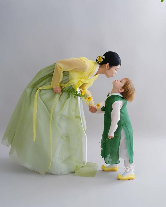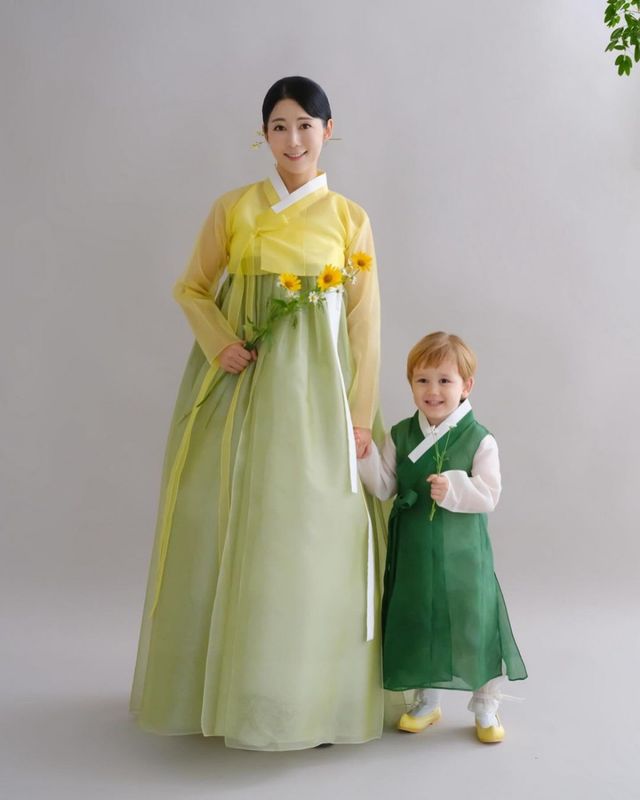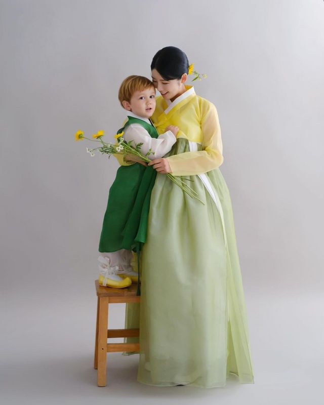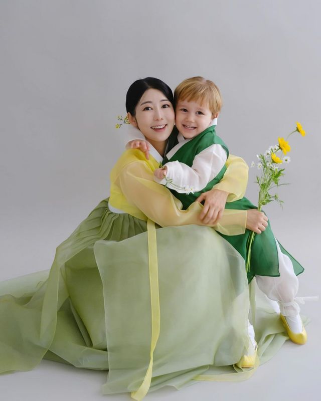 한복입고 가족사진 찍은 사유리와 아들 젠