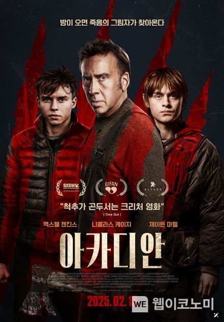 (웹이코노미) '드림 시나리오''롱레그스' 니콜라스 케이지와 '존 윅''에브리씽 에브리웨어 올 앳 원스' 제작진이 의기투합한 크리처 액션 스릴러 '아카디안'이 오는 2월 13일(목) 개봉을 확정하고, 단번에 눈길을 사로잡는 1차 예고편과 보도스틸을 공개했다.[감독: 벤자민 브루어 | 출연: 니콜라스 케이지, 맥스웰 젠킨스, 제이든 마텔 | 장르: SF, 스릴러, 액션 | 수입/배급: ㈜스튜디오 디에이치엘]