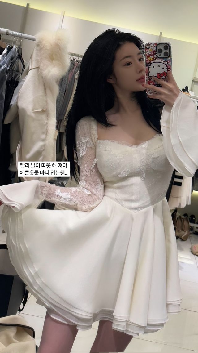 공개된 사진 속 유예원은 화이트 미니 드레스를 입고 거울 셀카를 찍고 있는 모습이다. 사랑스러운 포즈로 치맛자락을 들어 올리고 있는 유혜원은 만화를 찢고 나온 듯한 미모로 눈길을 사로잡았다. 최근 41kg임을 인증한 유혜원은 여리여리한 몸매로 유려한 핏을 자랑해 시선을 끌었다.