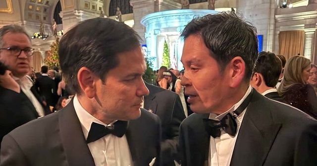 정용진 신세계그룹 회장이 20일 저녁(현지시각)에 열린 스타라이트 무도회에서 트럼프 행정부 내각 인사중 최초로 상원 인준을 통과한 마크 루비오 국무장관과 만나 담소를 나누고 있다. / 신세계그룹 제공