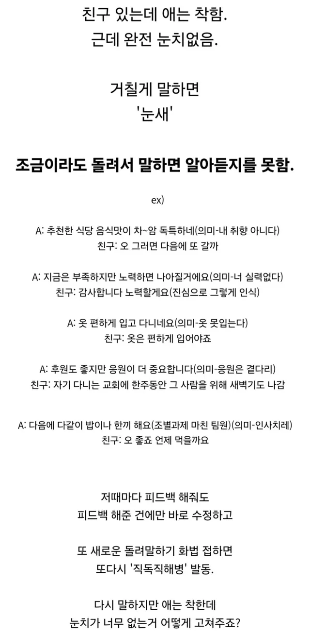 돌려말하기 화법에 면역력이 없는 친구