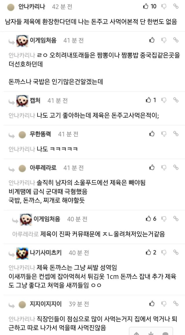 제육밖에서 밥 먹을 때 사 먹어본 적이 거의 없긴 함