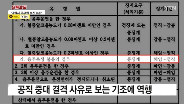 무려 고속도로를 20km나 달렸고 타이어도 펑크나서 사고 의혹도 받고 있으며, 공무원 징계양정상 음주측정 불응은 정직 이상~해임까지 가능한 중징계사안임