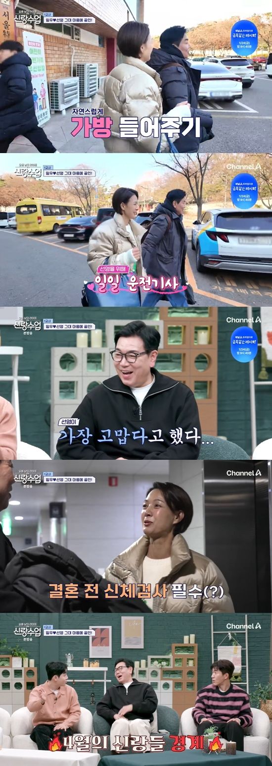 22일 방송된 채널A 요즘 남자 라이프-신랑수업'(이하 '신랑수업')에서는 김일우와 박선영이 찜질방 데이트를 즐기는 모습이 담겼다.