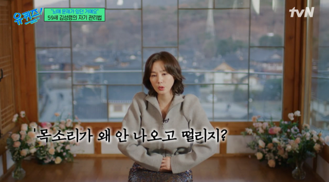 김성령은 22일 방송된 tvN ‘유 퀴즈 온 더 블록’에 출연해 다양한 이야기를 나누던 중 연축성 발성장애에 대해 언급했다.