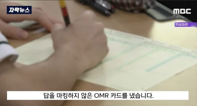 지 애가 시험시간 내에 omr카드 못쓴걸