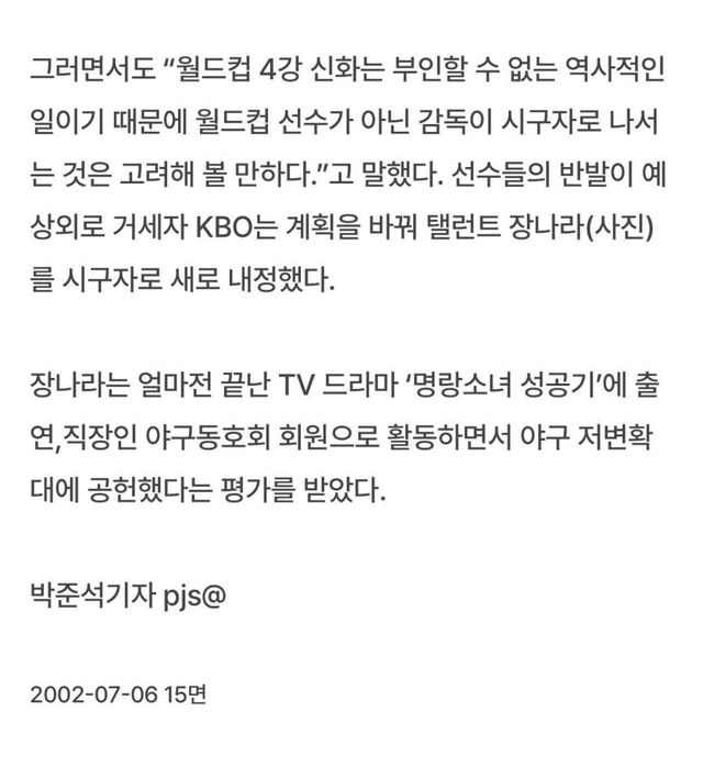 2002년 프로야구 올스타전 시구자 홍명보였는데
