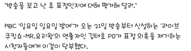 입봉작 일밤 코너 MR.요리왕