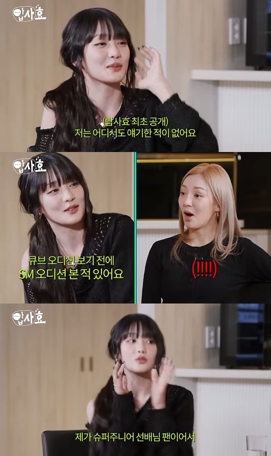 이날 효연은 "재미있는 이야기를 해달라"고 요청했고, 민니는 "어디서도 얘기한 적 없다"며 "큐브 오디션 보기 전에 SM 오디션을 봤었다"고 밝혀 모두를 놀라게 했다.