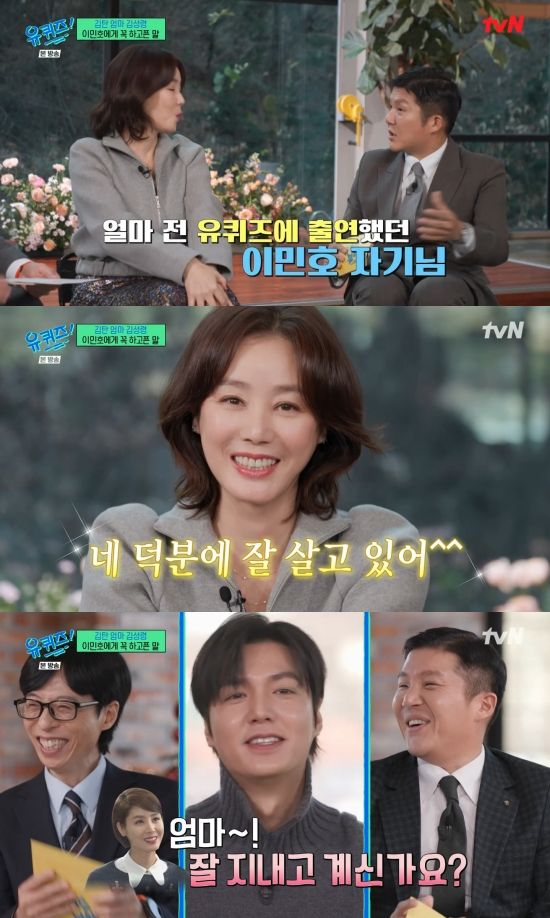 22일 방송된 tvN '유 퀴즈 온 더 블럭'(이하 '유퀴즈')에서는 '나를 이기는 법' 특집으로 꾸며진 가운데 김성령이 이민호에게 영상 편지를 보낸 장면이 전파를 탔다.