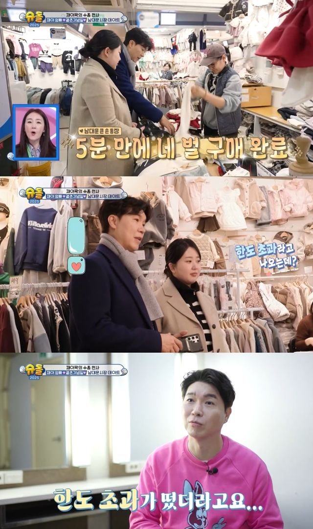 내복 가게에 걸려 있던 아기 옷들도 박수홍의 시선을 사로잡았다. "손 싸개는 3개 정도만 사자"는 김다예의 만류에도 박수홍은 "더 살래"라며 폭주하는 모습을 보였다.