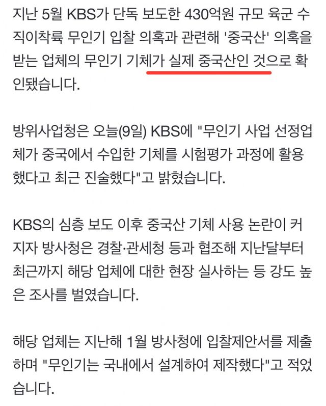 430억가량의 기계가 중국산 아니냐는 논란이 있었는데
