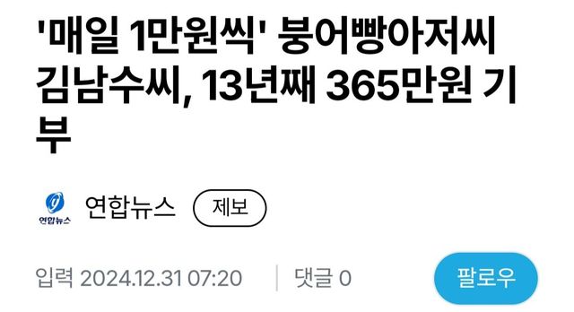 붕어빵 장사로 13년째 기부하시는 존나 멋있는 사장님