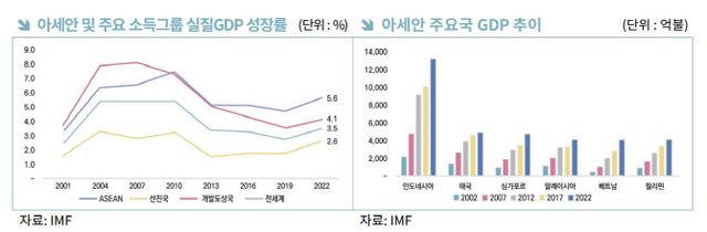 한국무역협회(KITA) 국제무역통상연구원이 23일 발간한 ‘아세안 빅3, 5억 시장을 활용하라’ 보고서는 아세안이 가파른 경제성장과 중산층 증가로 매력적인 소비시장일 뿐만 아니라 저렴한 생산 비용과 풍부한 원자재, 정부의 적극적 산업 육성 정책 등에 따라 차세대 생산기지로서의 가치도 큰 것으로 분석했다.