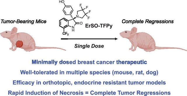 이어 다양한 인간 유방암 종양을 이식한 생쥐 모델에서는 단 한 번의 ErSO-TFPy 투여로 종양이 제거되거나 종양 크기가 현저히 줄어들었다.