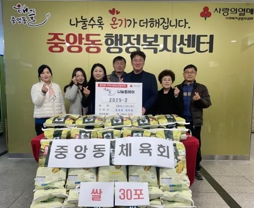 김유환 중앙동 체육회장은 “지역 내 어려움을 겪고 있는 이웃들에게 실질적인 도움이 되기를 바라며, 앞으로도 지속적으로 나눔 활동을 이어가 지역사회에 긍정적인 영향을 미칠 수 있도록 노력하겠다”고 전했다.