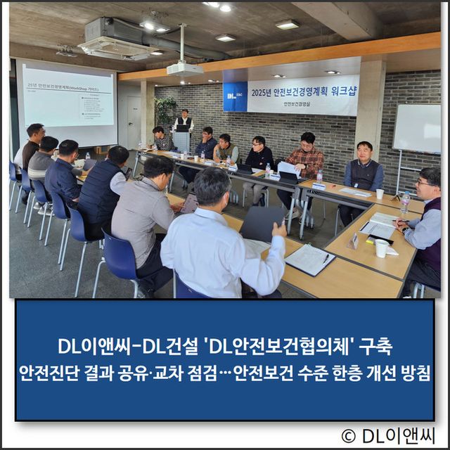 DL이앤씨(375500)가 자회사 DL건설(001880)과 안전 경영 강화의 일환으로 'DL안전보건협의체(이하 협의체)'를 공동으로 구축해 운영한다.