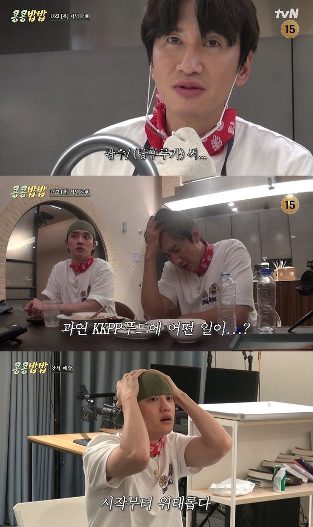 23일 방송되는 tvN '콩 심은 데 콩 나고 밥 먹으면 밥심 난다'(이하 '콩콩밥밥')에서는 '뿅뿅 지구오락실'(이하 '지락실') 제작진과의 음악 퀴즈 대결에서 진땀을 흘리는 이광수와 도경수의 도파민 터지는 게임 대결이 펼쳐질 예정이다.