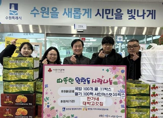 기부한 국밥과 과일은 원천동 내 독거노인 등 식사에 어려움을 겪는 이웃들에게 전달될 예정이다.