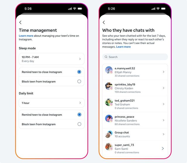 이 기능을 통해 보호자는 자녀 계정의 기본 설정 변경을 승인할 수 있다. 또한 최근 7일 동안 청소년이 SNS를 사용한 시간, 개인 메시지를 주고받은 사람, 팔로우·팔로워·차단 계정 목록을 확인할 수 있다.