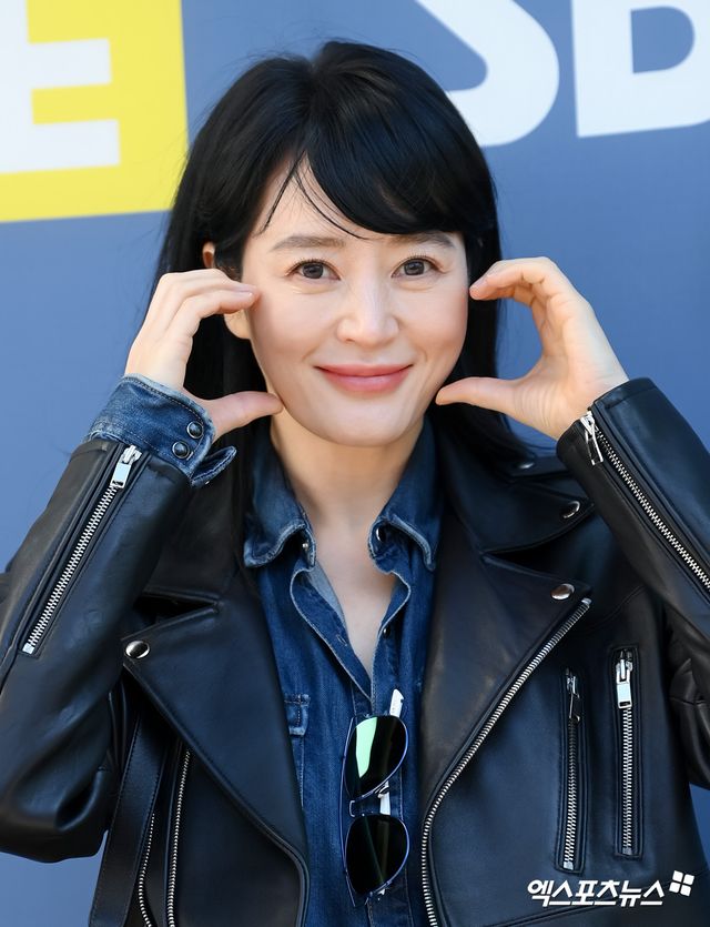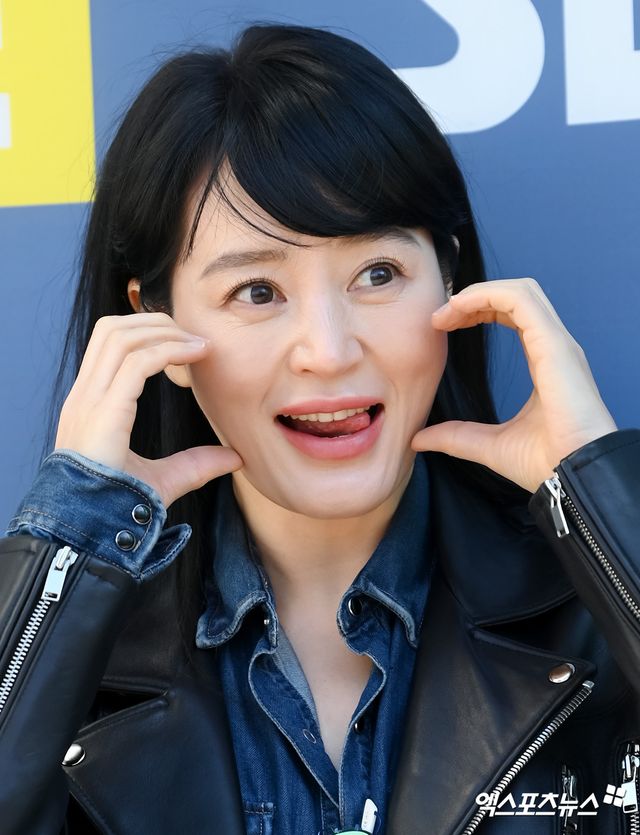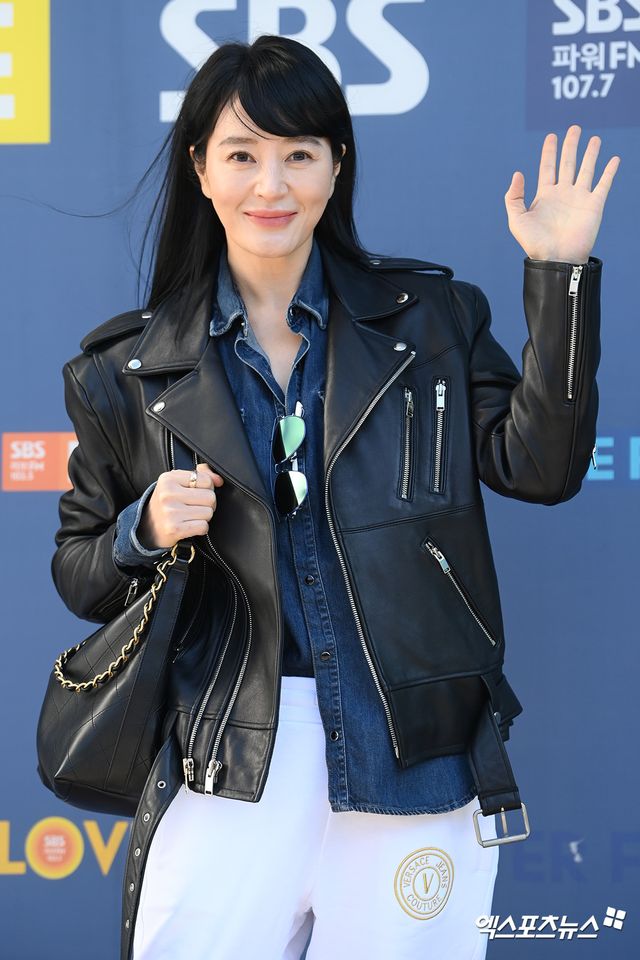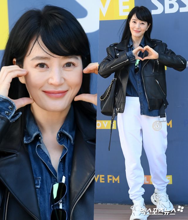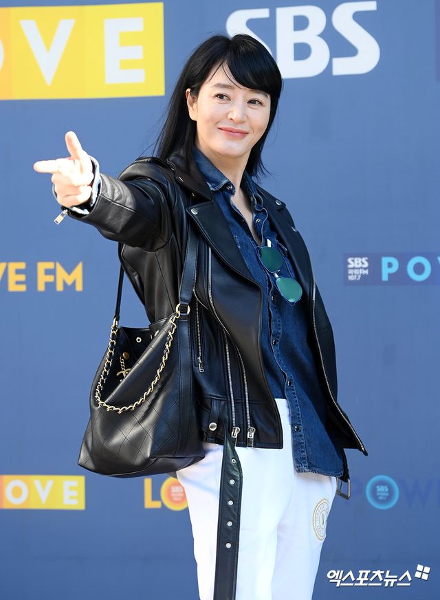 이날 방송에 참석한 배우 김혜수가 출근길에 포즈를 취하고 있다.