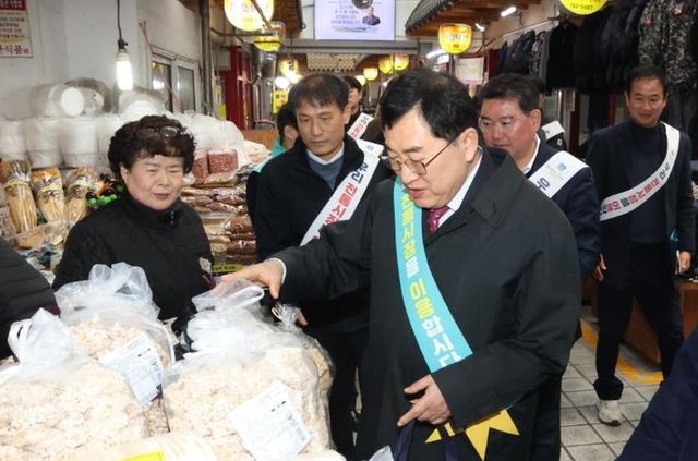 [파이낸셜경제=김예빈 기자] 주낙영 경주시장이 23일 중앙시장을 방문해 설 명절 물품을 구매하며 상인들의 어려움을 청취하고 격려했다.