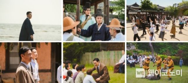 또한 ‘나라 꼴이 기막히니’라는 뮤지컬 넘버의 한 장면이 공개되어 눈길을 사로잡는다. 해당 넘버는 암울했던 일제강점기의 현실을 시사함과 동시에 뮤지컬로 승화된 희망과 연대의 메시지를 담고 있어 영화에 대한 기대를 배가시킨다.