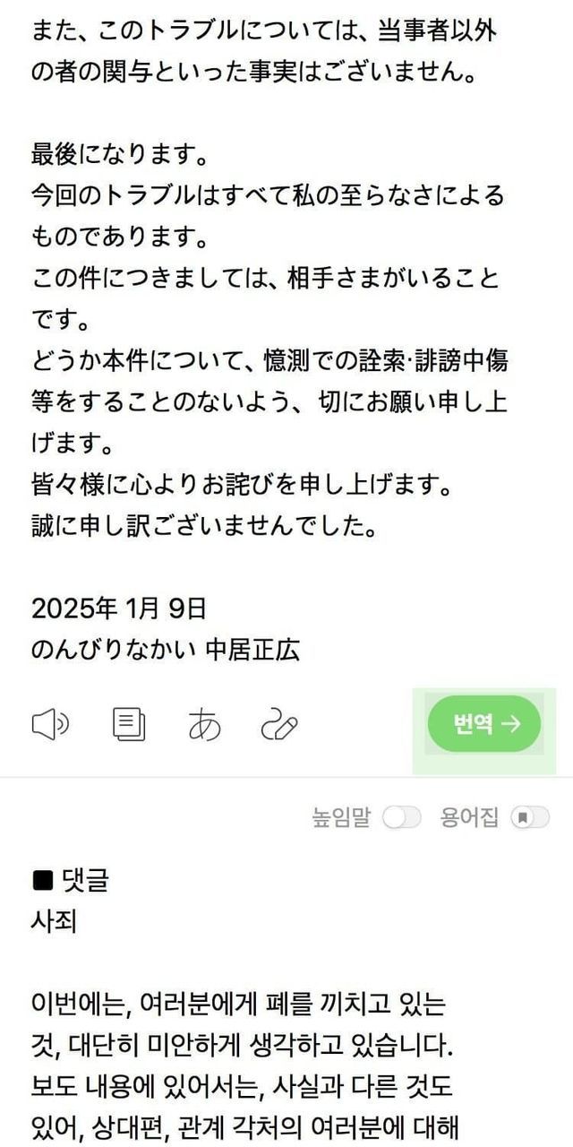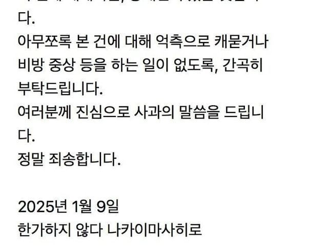 아무쪼록 본 건에 대해 억측으로 캐거나 비방 중상 등을 하는 일이 없도록, 간곡히 부탁드립니다.