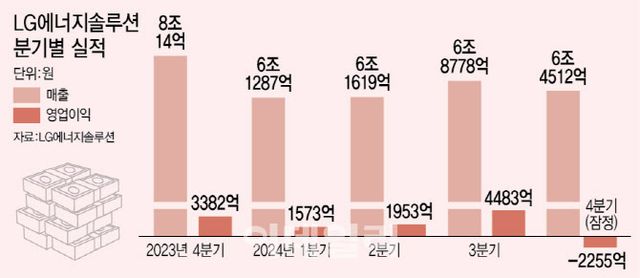 지난 9일 발표한 LG에너지솔루션 지난해 4분기 연결 기준 잠정 실적은 매출액 6조4512억원, 영업손실 2255억원으로 집계됐다. 3년여 만에 분기 첫 적자를 기록했다. 중국산 공세와 전기차 캐즘(일시적 수요 정체) 장기화 탓에 K배터리 한파가 지속하는 모양새다.