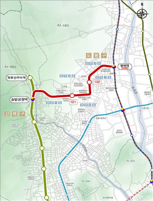 서울시(시장 오세훈) 최초 경전철로 강북구와 성북구, 동대문구를 연결하는 우이신설선이 1호선 방학역과 연결된다.