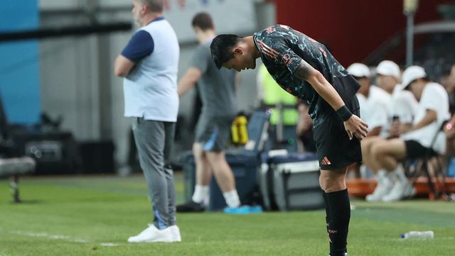 지난해 8월 3일 서울월드컵경기장에서 열린 2024 쿠팡플레이 시리즈 2차전 토트넘과 바이에른 뮌헨의 경기에서 김민재가 교체된 후 인사하고 있다. / 연합뉴스