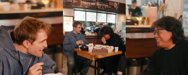 23일 영화 ‘미키 17’ 공식 X(구 트위터) 계정에는 한국의 한 떡볶이집에 방문한 봉준호 감독과 로버트 패틴슨의 모습을 포착한 영상이 올라왔다.