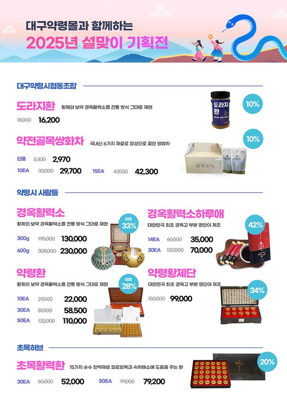 할인 행사 관련 세부적으로 궁금한 사항은 대구약령몰 고객센터(☎053-254-1951)로 문의하면 된다.