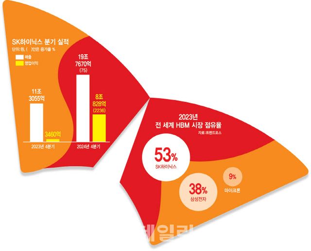 SK하이닉스(000660)가 고대역폭메모리(HBM) 효과를 톡톡히 누리며 역대 최대 실적을 냈다. 지난해 매 분기마다 줄줄이 호실적을 기록한 SK하이닉스(000660)는 지난해 4분기 영업이익 8조원을 넘기며 전체 상장사 중 1위가 유력해졌다. 올해 여전히 AI 메모리 수요가 견조한 만큼 올해 전망 역시 밝다는 평가가 나온다.