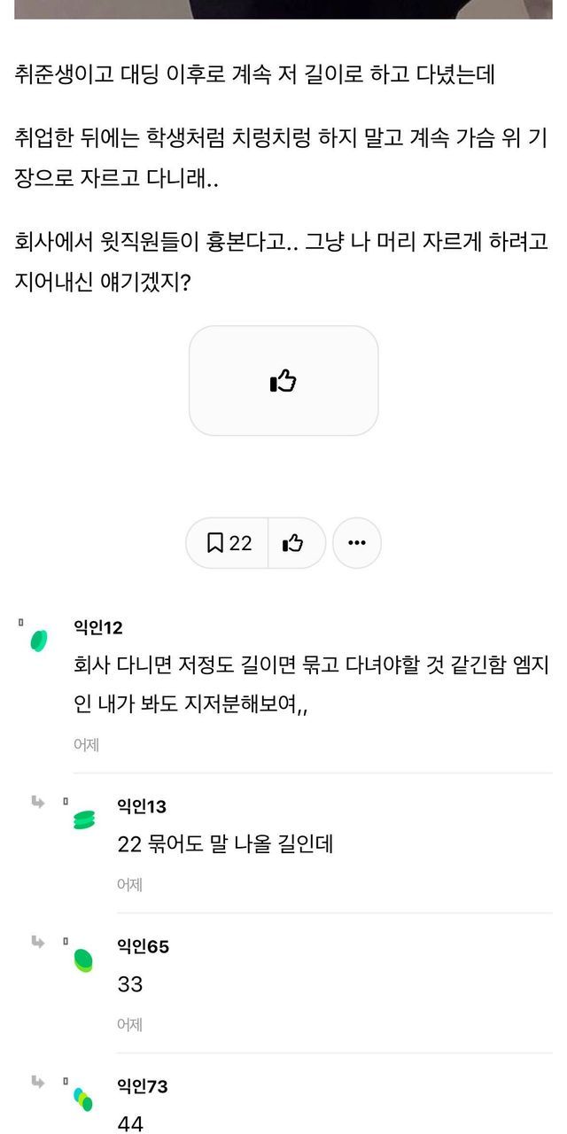 여자 취준생 머리 길이 논란