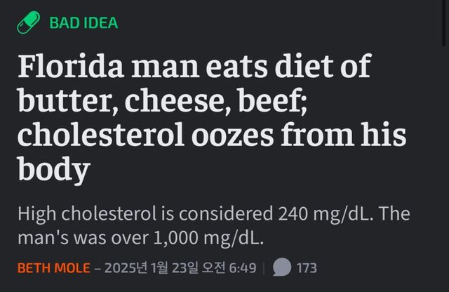 이상지질혈증(고지혈증) 기준이 혈중콜레스테롤 240mg인데 1000mg이 나옴
