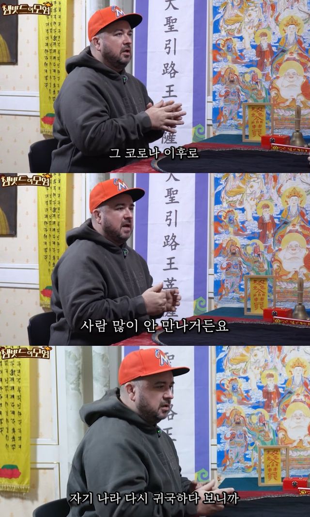 이에 샘해밍턴은 "무섭다"고 동의하며, "코로나 이후로 사람을 많이 안 만난다"면서 "그 시기에 친한 친구들은 다 자기 나라로 귀국하다 보니까 사람들하고 거리감도 있고, 조심스럽다"고 말했다. 이어 "애들과 와이프도 옆에 있지만 가끔 저도 외로울 때가 생각보다 많다"고 덧붙였다.