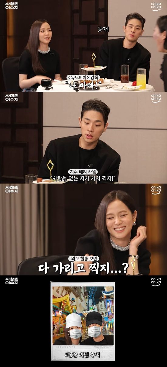 지수도 "어떤 연인이 이렇게 다 가리고 찍나 싶었다"라며 "지금 생각하면 추억이다"라고 에피소드를 전했다.