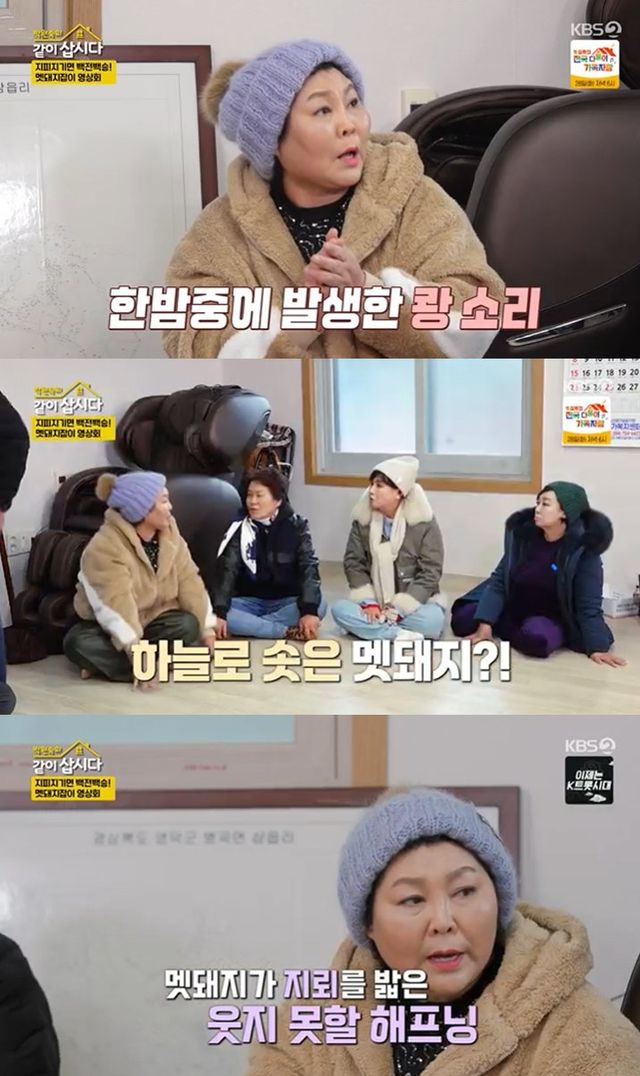 23일 KBS 2TV '박원숙의 같이 삽시다'에서는 박원숙, 혜은이, 신계숙, 이순실이 영덕의 멧돼지를 흔적을 찾아 떠난다.