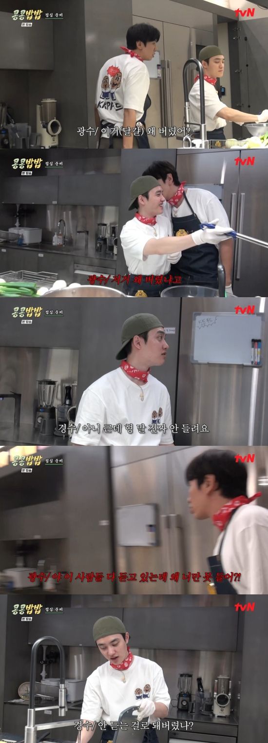 23일 방송된 tvN '콩 심은 데 콩 나고 밥 먹으면 밥심 난다'(이하 '콩콩밥밥')에서는 이광수와 도경수가 구내 식당을 운영하는 장면이 전파를 탔다.