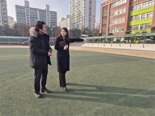 이어 시곡초등학교를 찾은 장 의원은 학교 측으로부터 인조잔디 운동장 조성, 옥상 방수 공사, 특수아동 1대1 맞춤교육 예산 확대 등 다양한 지원 요청을 들었다. 이강식 시곡초 교감은 “학생들이 안전하고 쾌적한 환경에서 뛰어놀 수 있도록 친환경 인조잔디 운동장이 꼭 필요하다”고 강조하며, 현재 진행 중인 석면제거 공사의 2월 말 완료 계획도 보고했다.