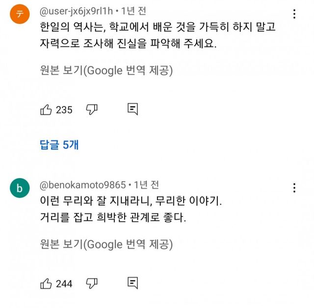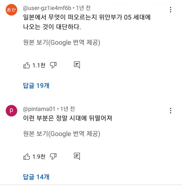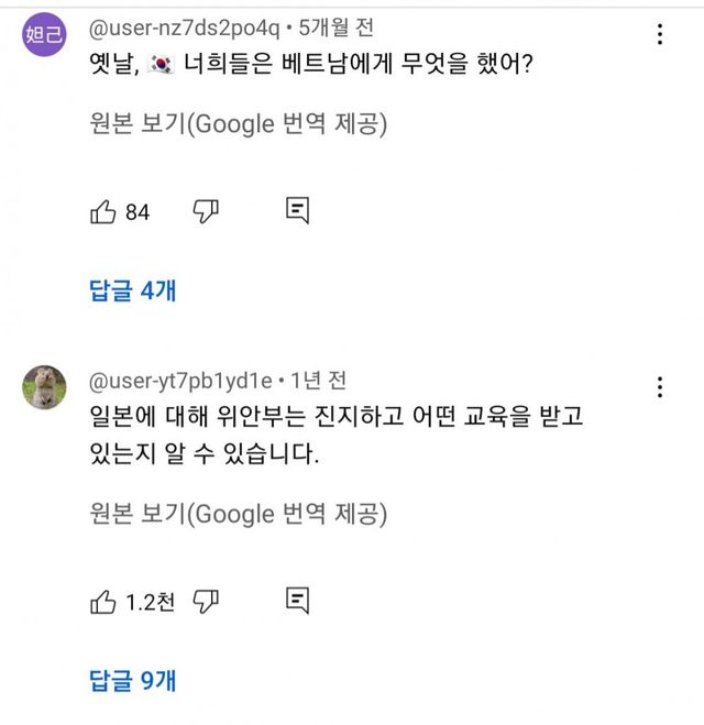 어느 유튜버가 길거리에 지나가는 학생에게 일본하면 떠오르는 것이 뭐냐고 인터뷰 하면서 묻자 학생의 대답은 “위안부” 였음. 학생의 나이는 당시 중학생인 05년생이었고